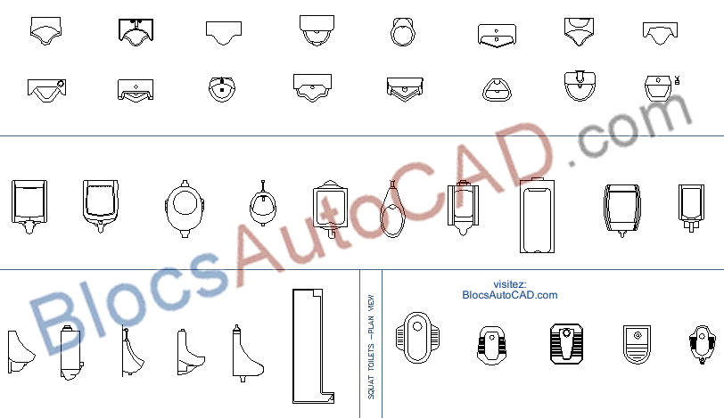 PLAN DE SQUAT DE URINARIOS Y PAPELES, CARA Y PERFIL VISTA DE ELEVACIÓN (BLOQUES AUTOCAD DWG)