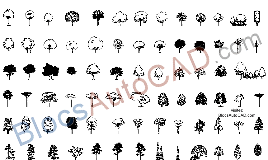 77 árboles autocad de alta calidad (bloques dwg de autocad) vista en alzado