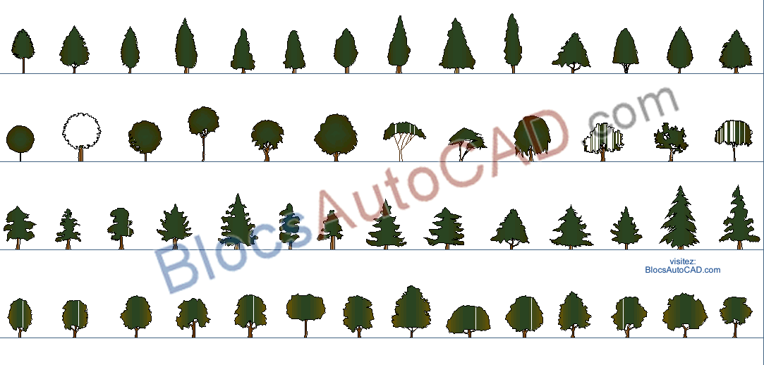 54 árboles autocad de alta calidad (bloques dwg de autocad) de un solo color vista en alzado